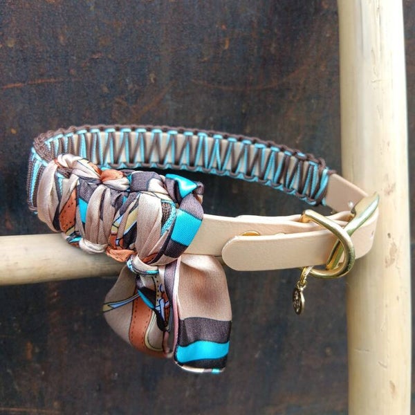 Geef de halsomtrek van je hond door en ik maak het op maat van jouw hond. Liever wat breder of smaller, ik hoor het graag.